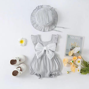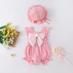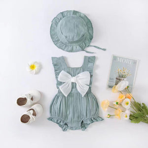 Un outfit dolcissimo per le giornate estive! Questo pagliaccetto con balze e maxi fiocco è il capo perfetto per la tua bambina. Realizzato in cotone, è ideale per le giornate calde. Il design con spalline larghe, volant e dettagli arricciati dona un tocco romantico e raffinato. Il set include anche un cappellino coordinato con balze, per proteggere la tua piccola dal sole con stile.