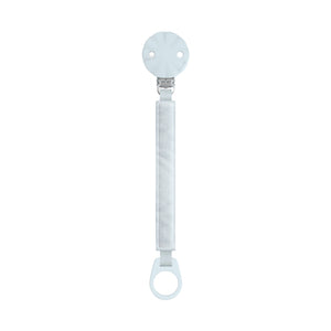 Questa catenella per ciuccio permette di attaccare il ciuccio ai vestiti del bambino, evitando così che cada a terra, si sporchi o si perda. La clip della spilla, che si attacca agli indumenti, ha attaccato un anello in silicone in cui inserire il bottone rotondo dei ciucci Wonder e Wonderland. Porta ciuccio con spilla di forma rotonda, il complemento ideale per il ciuccio.