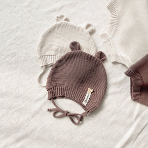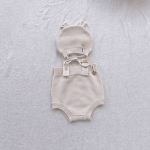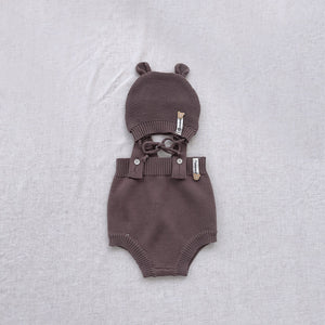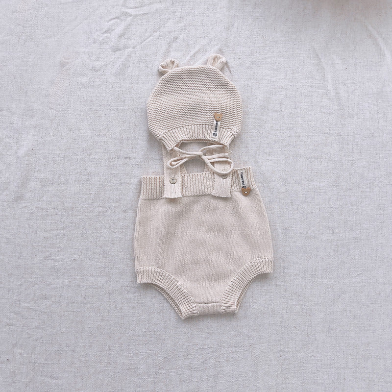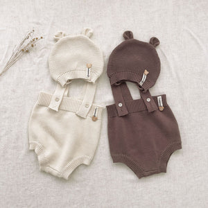 Salopette in Maglia per Neonato + cappellino Stile Orsetto