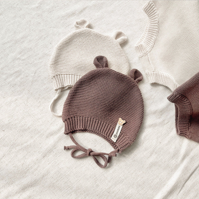 Delizioso set in maglia per neonato composto da una salopette e un cappellino coordinato con dolci orecchiette da orsetto. Realizzato in morbido cotone lavorato a maglia, perfetto per la pelle delicata dei più piccoli. Disponibile in due colori neutri, crema e marrone, ideali per ogni occasione. La salopette presenta bretelle regolabili con bottoncini in legno per una vestibilità comoda e sicura. Un outfit perfetto per neonati, ideale per servizi fotografici, regali di nascita o semplicemente per vestire il tuo piccolo con uno stile tenero e raffinato.