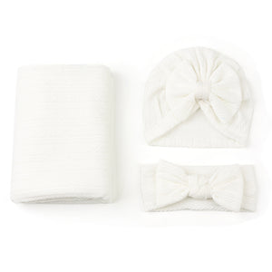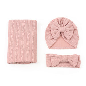 Set 3 Neonati con Coperta Fascia e Cappellino