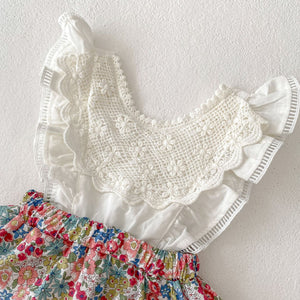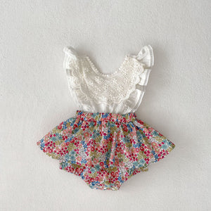 Set Completo Estivo per Bambine con Top Ricamato e Gonna Floreale