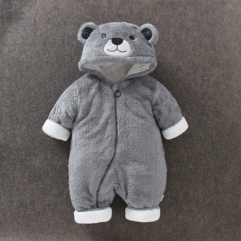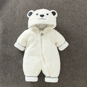 Un dolce orsetto per affrontare l’inverno con stile! Questa tutina invernale è realizzata in morbidissimo pile bianco e presenta un cappuccio con simpatico viso ricamato e orecchie 3D. Internamente foderata per offrire calore e comfort, ha una pratica zip frontale per facilitare il cambio. Perfetta per le giornate più fredde e le passeggiate invernali.