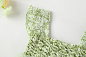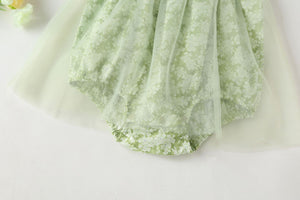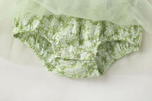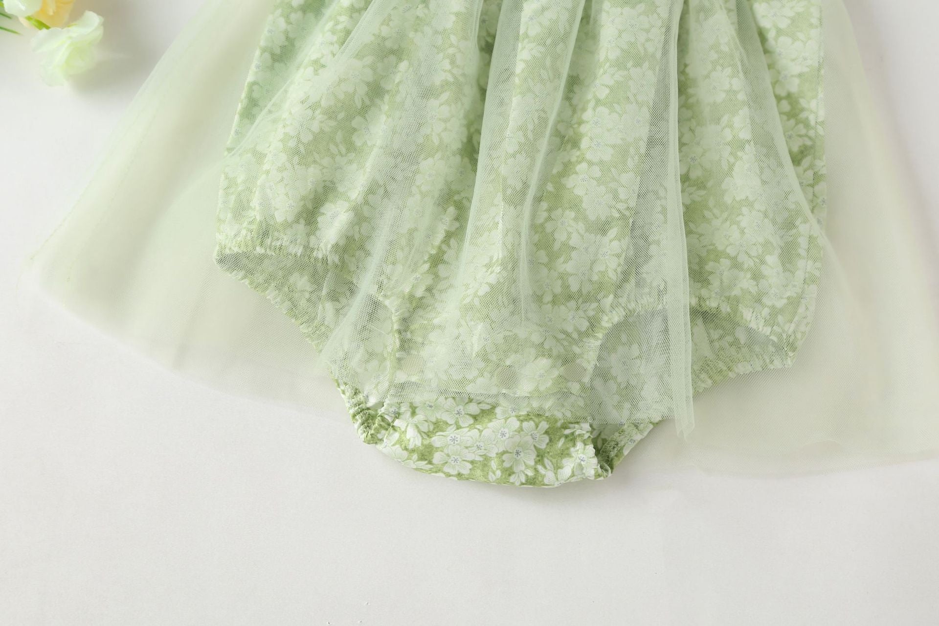 Vestitino/pagliaccetto verde malva floreale con cappellino