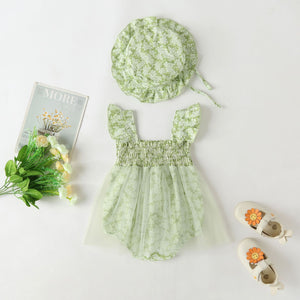 Un dolcissimo completo estivo per bambine che unisce eleganza e comfort! Questo set include un adorabile pagliaccetto in tessuto leggero con stampa floreale, spalline a volant e una delicata gonna in tulle per un tocco da principessa. Il cappello coordinato protegge dal sole, rendendolo perfetto per le giornate all'aperto. Completa il look con le scarpine abbinate per un outfit irresistibile!