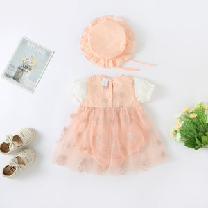 Fai sentire la tua piccola una vera principessa con questo incantevole vestitino! Realizzato in tessuto leggero e delicato sulla pelle, presenta un elegante strato di tulle con dettagli scintillanti e un adorabile fiocco in raso al centro. Le maniche a sbuffo e il design raffinato aggiungono un tocco di romanticismo perfetto per occasioni speciali come battesimi, compleanni e cerimonie.