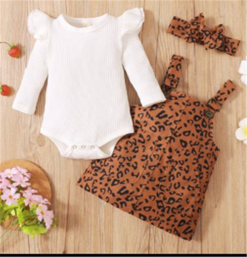 Set bimba maculato salopette,magliettina e fascia 3pz