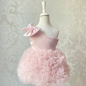 Abito Cerimonia Bambina Monospalla – Tulle Voluminoso e Fiocco in Raso