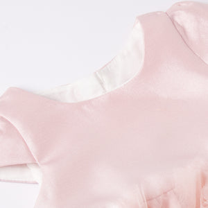 Romantico e spettacolare, questo abito da cerimonia per bambina è l'ideale per occasioni importanti come battesimi, compleanni o eventi speciali. Il corpetto in tessuto satinato rosa tenue si abbina a una meravigliosa gonna a palloncino composta da strati di tulle arricciato che creano un effetto nuvola. Le maniche a cappuccio e il fiocco lucido applicato sul retro completano il look da principessa con eleganza e dolcezza. Un vestito che cattura l’attenzione e fa sognare.