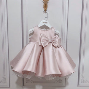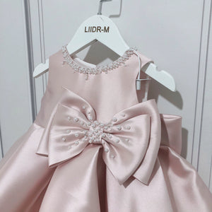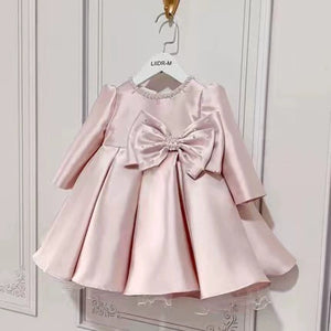 Abito Elegante Bambina Rosa con Fiocco – SCOLLATO E MANIUCA LUNGA