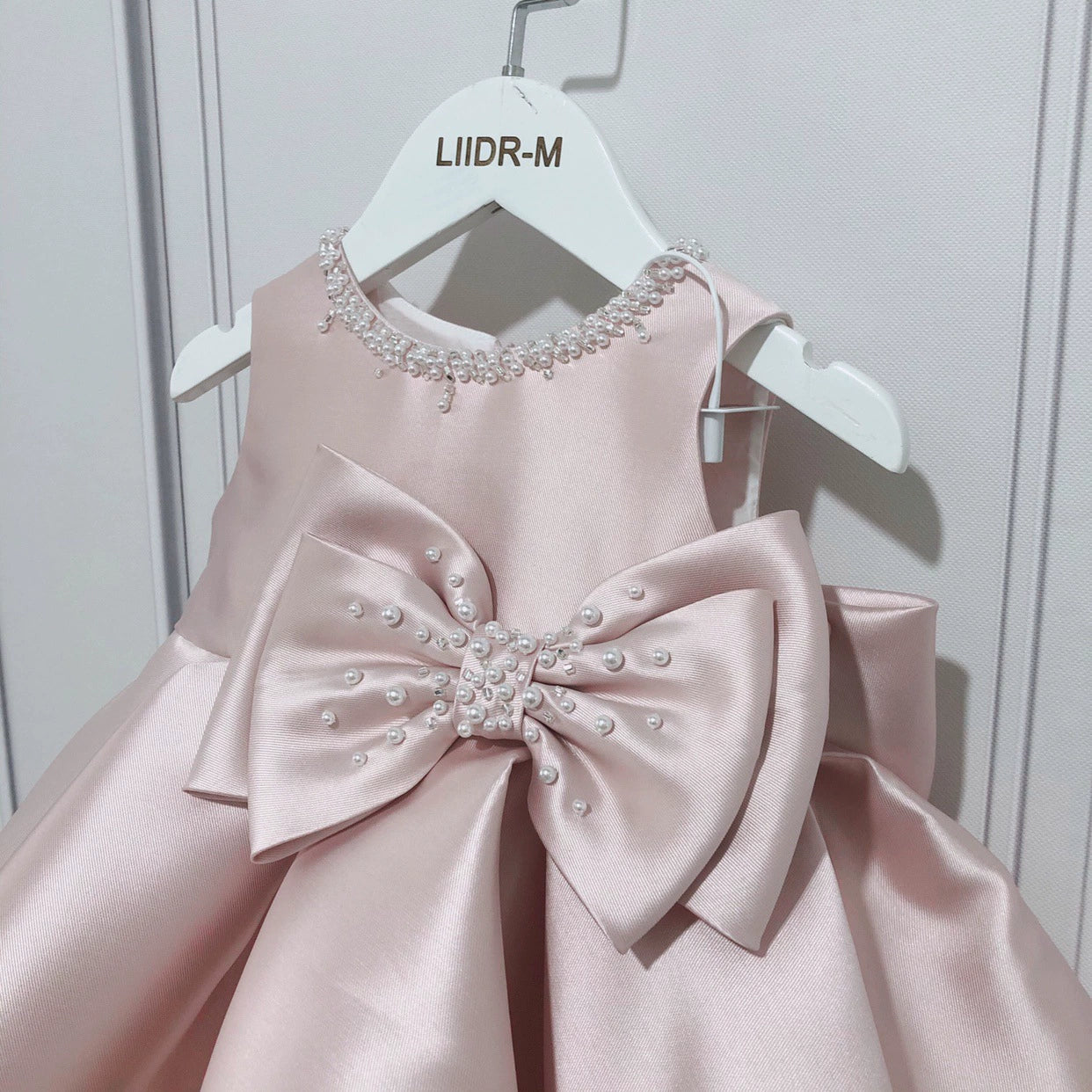 Home Abito Elegante Bambina Rosa con Fiocco – SCOLLATO E MANIUCA LUNGA