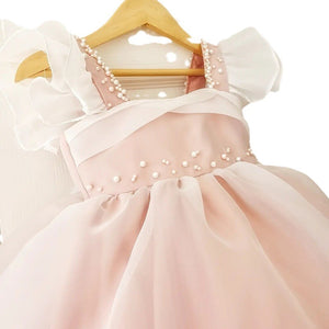 Abito Elegante da Cerimonia per Bambina Rosa Cipria con Perline