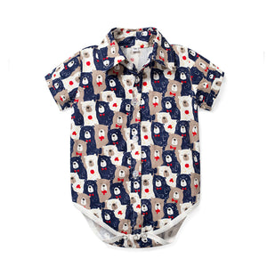 Body Camicia per Neonato con Stampa Orsetti Manica Corta