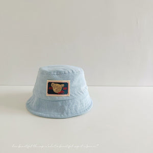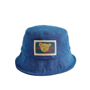Bucket Hat Bambino in Denim Azzurro Patch Orsetto Ricamata