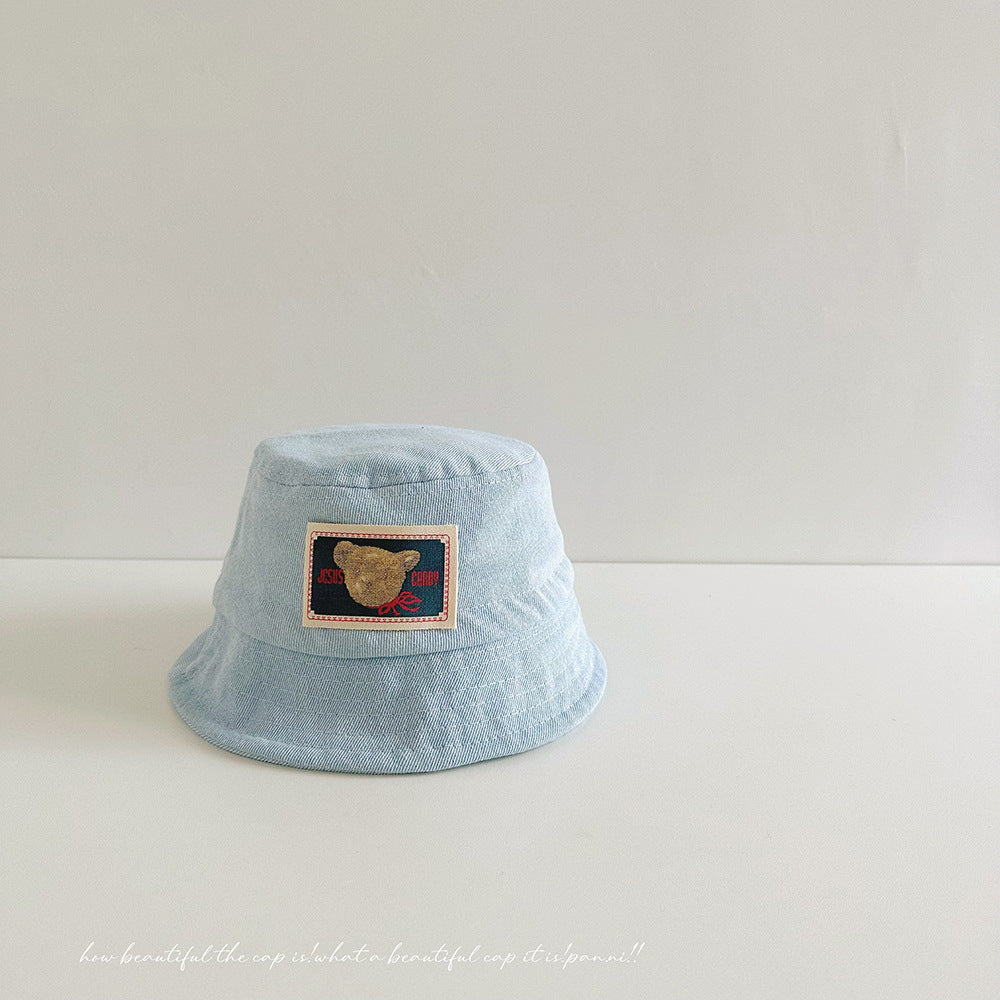 Bucket Hat Bambino in Denim Azzurro   Patch Orsetto Ricamata