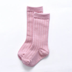Calze lunghe in morbido cotone traspirante, perfette per tenere i piedini dei bambini comodi e al caldo in ogni stagione.