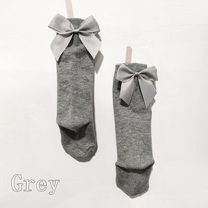 Calzini al ginocchio bambina con fiocco in raso posteriore – Vari colori