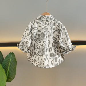 Camicia Bambino a Maniche Lunghe con Stampa Animalier Grigia