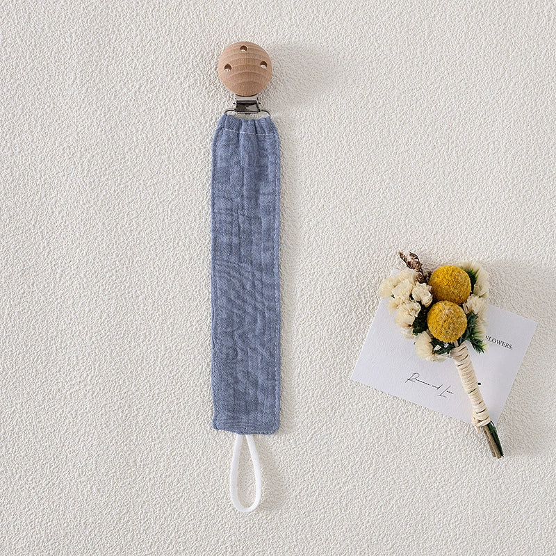 Pratica e dal design raffinato, la catenella portaciuccio in tessuto con clip in legno naturale è l’accessorio perfetto per ogni neonato. Realizzata con materiali sicuri e delicati, mantiene il ciuccio sempre pulito e a portata di mano, evitando che cada o si perda.