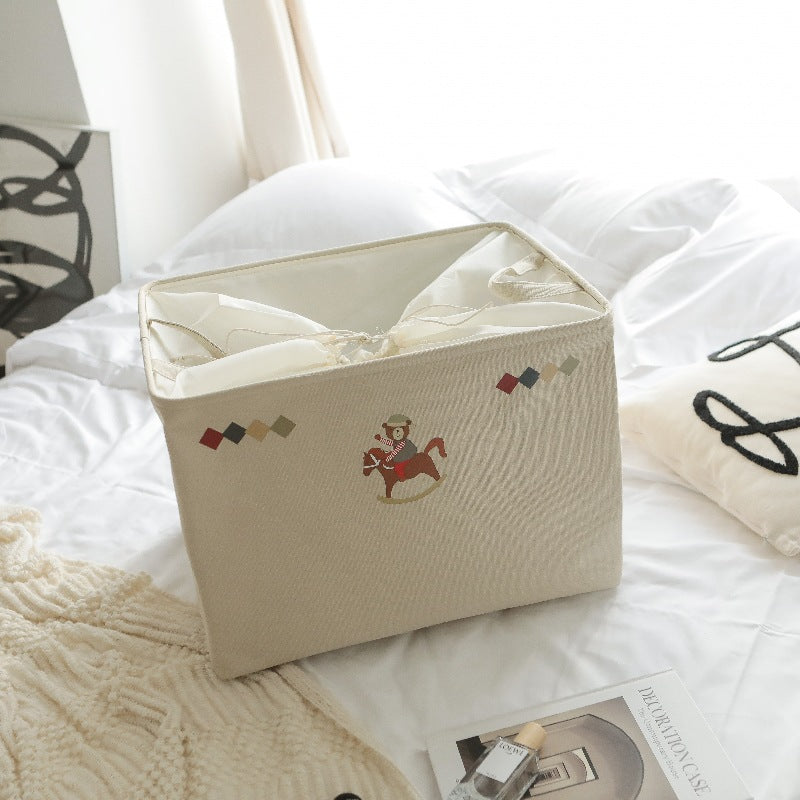 Cestino Portaoggetti con Cavallino a Dondolo e Orsetto – Tessuto Pieghevole