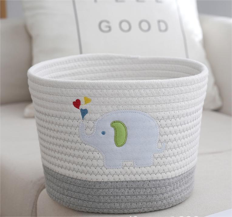 Cestino portaoggetti in cotone intrecciato con elefantino ricamato