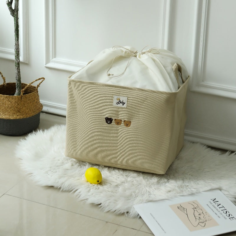 Rendi la cameretta più ordinata e accogliente con il cestino portaoggetti pieghevole decorato con tre dolci orsetti