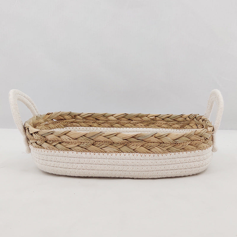 Un pratico e raffinato cestino rettangolare intrecciato con manici laterali, perfetto per organizzare e decorare la casa. Realizzato in corda e fibra naturale intrecciata, unisce resistenza e stile minimal, ideale per ogni ambiente.