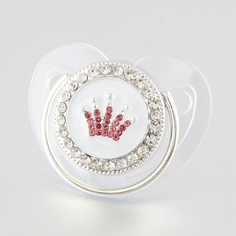 Un accessorio elegante e raffinato pensato per le piccole principesse. Il ciuccio è impreziosito da una corona con cristalli rosa e cornice di strass brillanti, disponibile in diverse varianti colore (rosa, bianco, trasparente). Realizzato con materiali sicuri e resistenti, è adatto a bambini dai 6 ai 12 mesi.