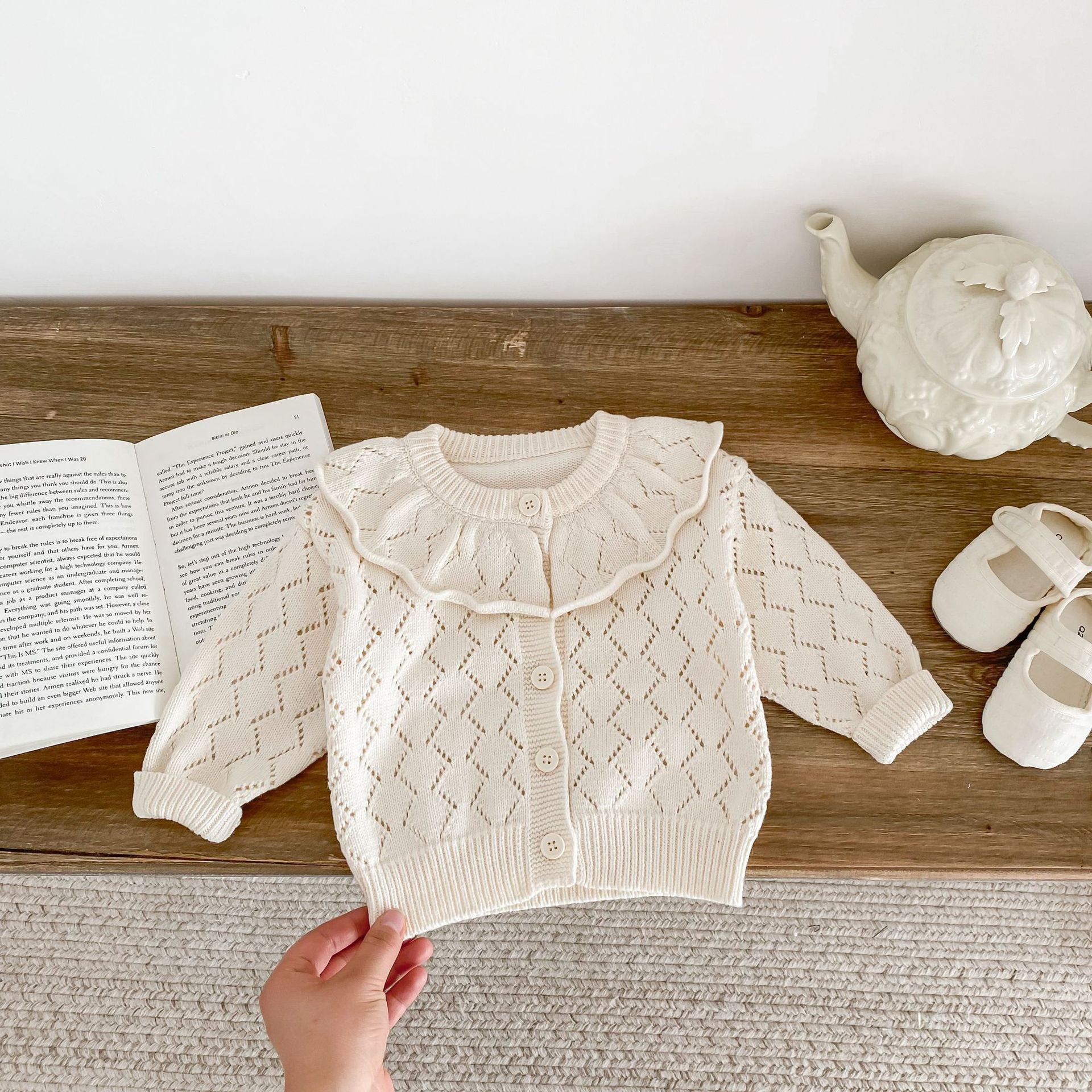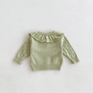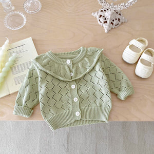 Cardigan Neonata/ Bimba in Maglia con Colletto Volant – Lavorazione a Rombo