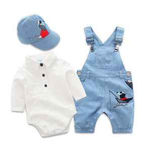 Completo 3 Pezzi Bimbo  Body, Salopette e Cappellino Coordinato