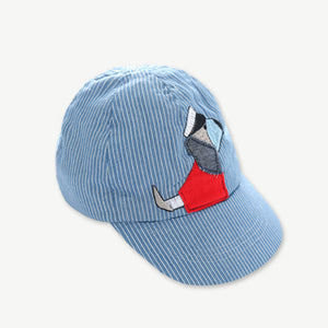 Un outfit pratico e super tenero per i piccoli esploratori! Il completo include un body bianco a manica lunga con bottoncini, una salopette azzurra a righe con simpatico ricamo e un cappello abbinato con visiera.