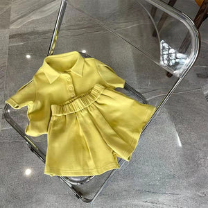 Fresco, elegante e super pratico! Questo completo estivo per bambina è composto da una polo a maniche corte con colletto e bottoncini frontali, abbinata a una gonna con pantaloncino integrato per garantire libertà di movimento e massimo comfort. Realizzato in morbido cotone azzurro pastello, è perfetto per le giornate calde, le uscite in città o le occasioni più casual. Un look raffinato e comodo che unisce stile e funzionalità in un solo outfit!