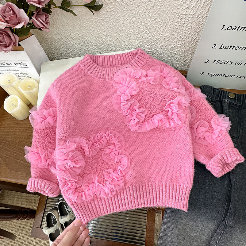 Completo Bambina Maglioncino Cuori in Tulle + Pantalone Svasato