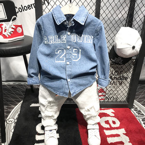Completo Bambino Casual Sportivo  Camicia in Jeans e Jeans Strappati