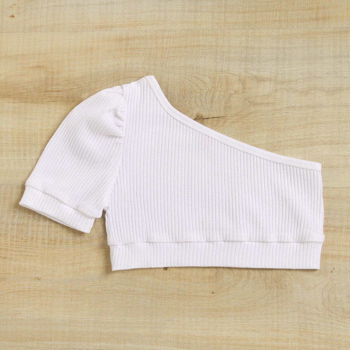Completo Bimba Estivo Top Monospalla Bianco e Gonna a Fiori con Balze