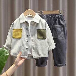 Completo Casual Bambino 3 Pezzi Giacca Multitasche, T-shirt e Pantaloni