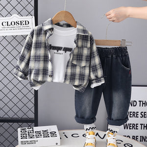 Completo Bimbo "Casual Cool" Camicia a Quadri, T-shirt e Jeans