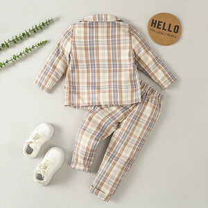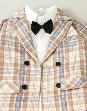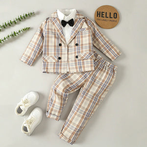 Completo Elegante Bimbo 3 Pezzi a Quadri – Giacca, Camicia con Papillon e Pantalone