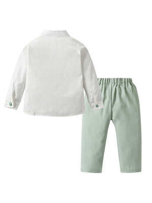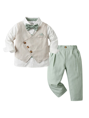 Completo Elegante Bimbo  3 Pezzi  Camicia, Gilet Asimmetrico e Pantaloni Verde Salvia