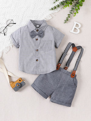 Completo elegante bimbo con papillon e bretelle – 3 pezzi Grigio