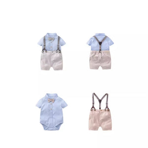Completo Elegante Neonato 2 Pezzi Camicia con Papillon e Pantaloncini con Bretelle