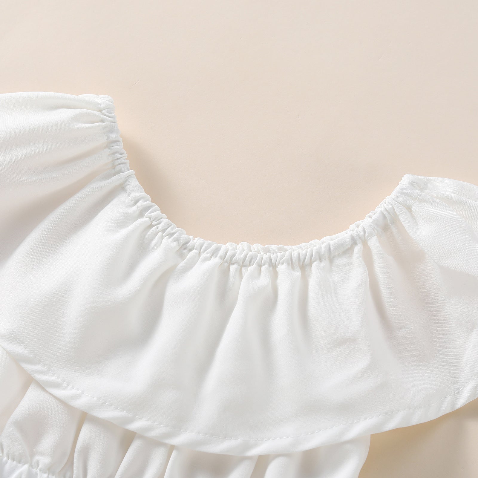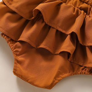Un outfit fresco e adorabile per le giornate più calde! Questo set da 3 pezzi per bambina include un top bianco con volant a spalla scoperta, una salopette corta color cognac con balze e fiocchetti decorativi, e una fascia coordinata con fiocco. Il tessuto leggero e traspirante assicura comfort durante tutto il giorno, mentre il design moderno e curato regala un look da piccola fashionista. Perfetto per passeggiate, foto ricordo o eventi speciali. Pratici bottoncini sul cavallo per un cambio facile. Stile e comodità in un solo set!