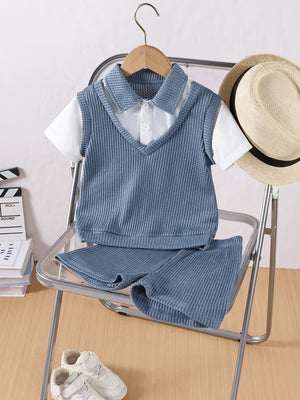 Completo Estivo Bambino con Gilet a Maglia e Polo 2 Pezzi Elegante e Casual