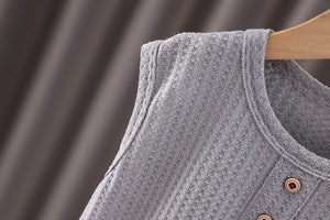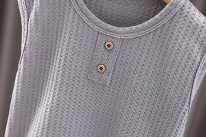Minimal, fresco e comodissimo! Questo set 2 pezzi comprende una canotta smanicata con bottoncini decorativi e shorts coordinati, realizzati in morbidissimo tessuto waffle traspirante. Disponibile in tre colori neutri: grigio, bianco e marrone. Ideale per le giornate calde e i momenti di relax!