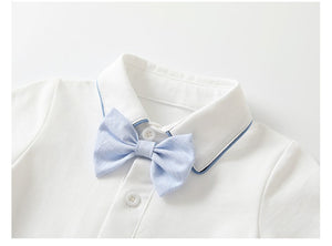 Completo Estivo elegante neonato 2 pezzi – Body camicia con papillon e pantaloncini estivi