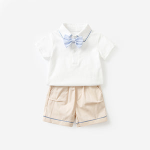 Home Completo Estivo elegante neonato 2 pezzi – Body camicia con papillon e pantaloncini estivi