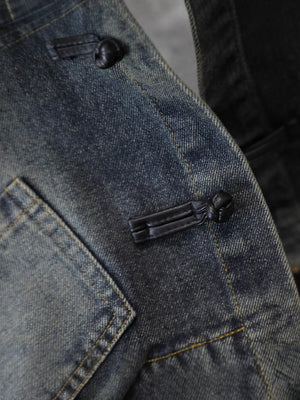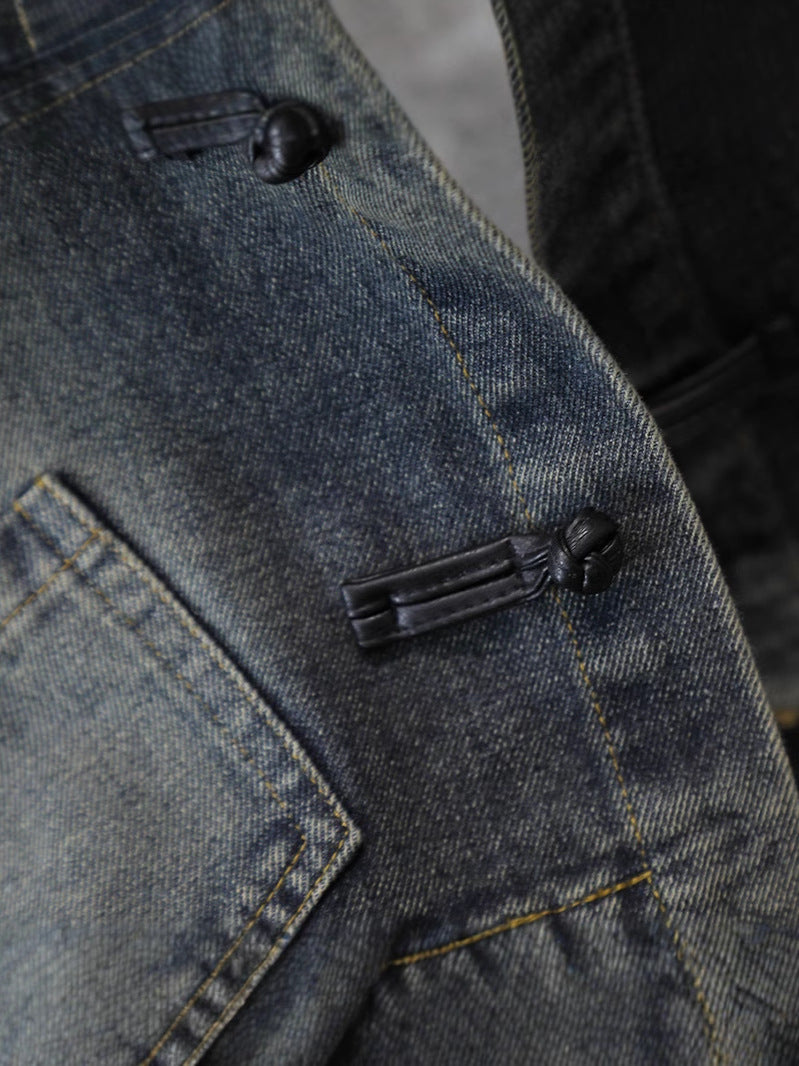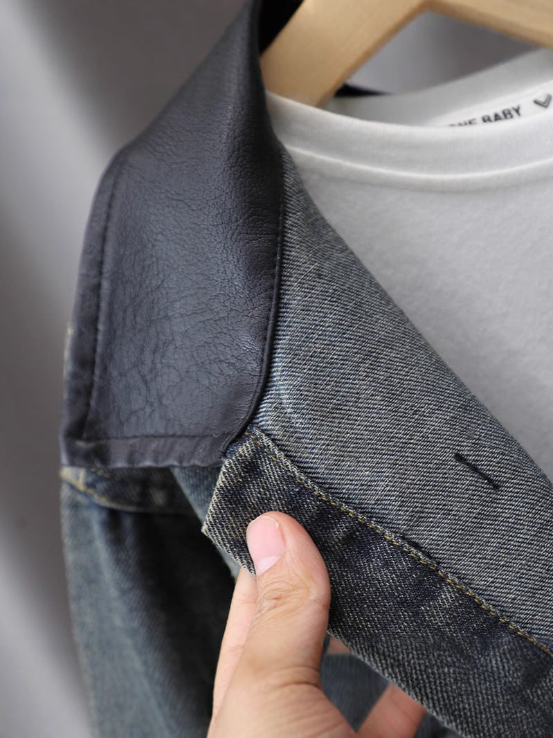 ✔️ Giacca in jeans con colletto classico, chiusura frontale e tasche applicate.