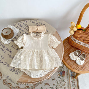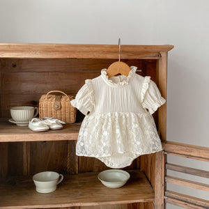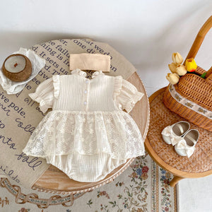 Pagliaccetto Neonata/ Bimba  in Mussola con Gonna Ricamata – Modello Fiorellini