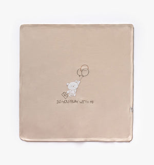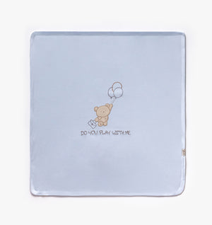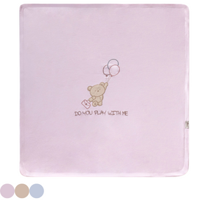 Avvolgi il tuo bambino in un caldo abbraccio con questa copertina ultra morbida, perfetta per la culla, il passeggino o il lettino. Realizzata in tessuto vellutato e delicato sulla pelle, è decorata con un dolce ricamo di orsetto con palloncini e la scritta Do you play with me?, per un tocco tenero e giocoso. Disponibile in più colori per adattarsi al meglio a ogni stile e necessità.