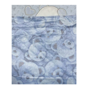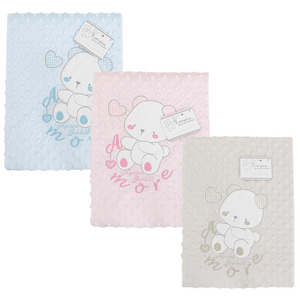 Un dolce abbraccio per il tuo piccolo con la copertina "Amore", realizzata in morbido pile con effetto pois in rilievo e un tenero orsetto ricamato. Disponibile in tre delicate tonalità – azzurro, rosa e beige – è perfetta per la babyculla, il passeggino o i momenti di coccole. Double face.